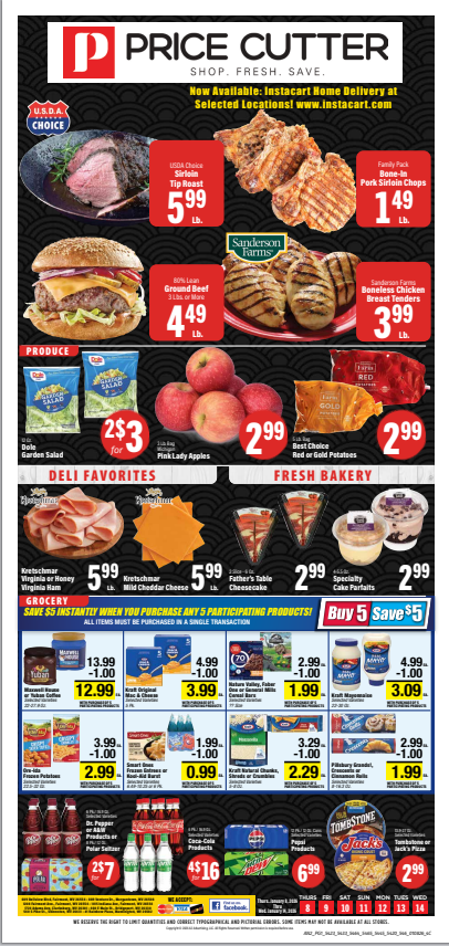 The Price Cutter Weekly Ad 8-14jan, 2026 brings you the best grocery deals, fresh produce, and bakery specials all in one place. Each week, the flyer is updated with new discounts, coupons, and limited-time offers. Shoppers can explore the current flyer to save more on everyday essentials and find the latest promotions at their local Price Cutter store.