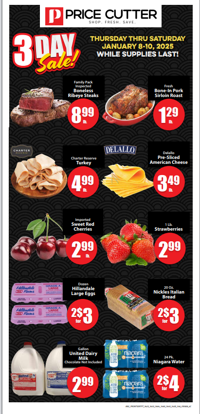 The Price Cutter Weekly Ad features fresh bakery treats and deli favorites at great prices. Enjoy deals on bread, cakes, sandwiches, and ready-to-eat meals.